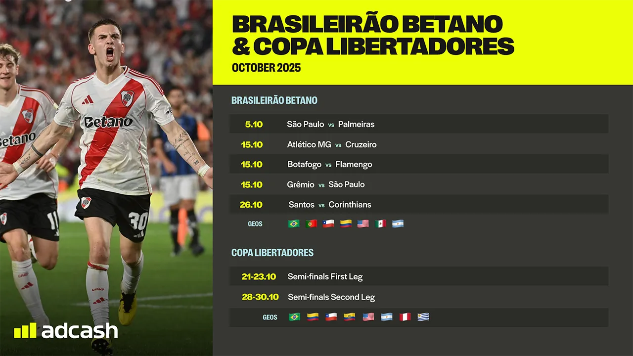 Ensuring you’re diverting your effort and budget to the right geos is nothing less than essential. Of particular note is Brazil – a geo that’s seen a considerable uptick in success in recent months. This is a considerably more important factor to consider with the Brasileirão league just on the horizon! 🌎